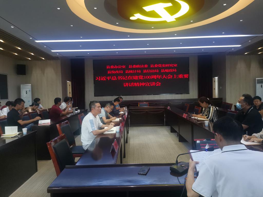 8月18日下午,县委党史研究室主任、县委宣讲团成员祁朝发在县委7楼会议室为县委办等7个县级部门党员干部,作学习贯彻习近平总书记在庆祝中国共产党成立100周年大会上重要讲话精神专题宣讲,县信访局党支部9名党员聆听了祁主任的讲解。