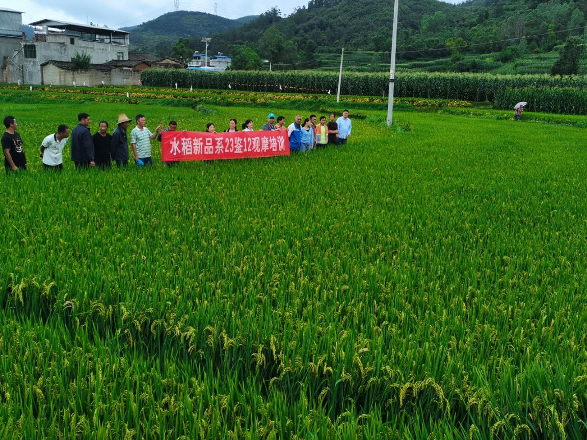 为促进“水稻+”绿色高质高效栽培技术的应用,加快优质水稻新品种楚粳57号示范推广步伐,帮助农民科学选种,提高种植水平,增加种稻效益。8月21日,武定县农业技术推广中心在狮山镇陈官村召开2025年优质水稻新品种楚粳57号观摩培训会。