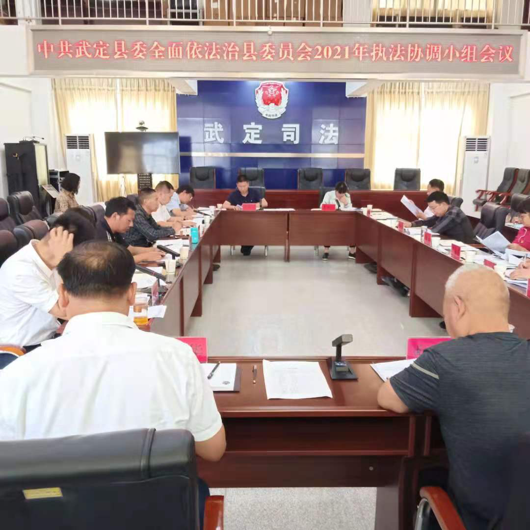 为深入学习贯彻习近平总书记“七一”重要讲话精神、习近平法治思想及省、州有关会议精神,2021年8月27日,县委全面依法治县委员会执法协调小组会议在县司法局四楼会议室召开。县委常委、县委政法委书记、县委全面依法治县委员会办公室主任文金华主持会议并讲话,执法协调小组副组长、各成员单位分管负责人参加会议。会议通报全县建设法治政府(依法行政)工作有关情况,研究部署执法协调小组下半年工作。