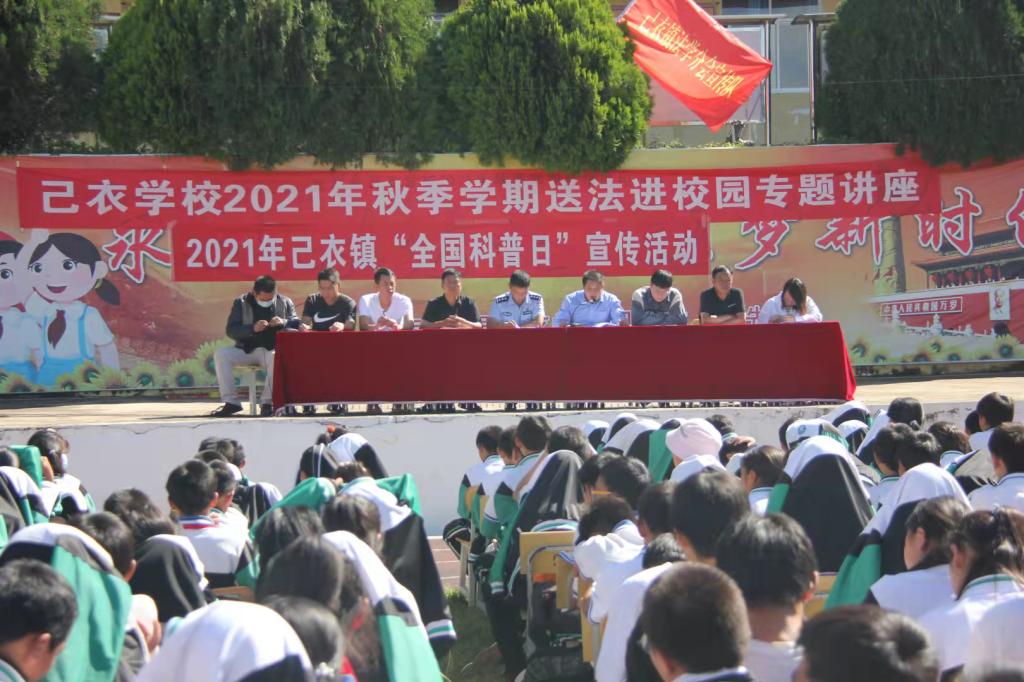 为进一步增强己衣学校师生的法律意识和法治观念,深入开展普法教育,提高依法治教、依法治校的力度,积极营造创建法制校园、和谐校园、平安校园的良好氛围。9月29日下午,己衣司法所联合派出所、综治办、农业农村服务中心、卫生院、科协等镇级有关部门,深入己衣学校开展2021年秋季学期“送法进校园”法治宣传教育活动,己衣镇人民政府副镇长李玉明到场指导并动员。
