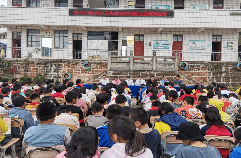 为进一步增强学生的法治意识,接受法治教育,自觉遵纪守法,学会利用法律武器来进行自我保护,做一个知法、守法的合格学生,9月14日下午,环州司法所联合环州乡综治办、环州派出所共同举办的“送法进校园”活动走进了环州乡中心小学,为全体师生带来了一堂别开生面的法治教育课。