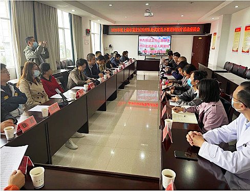 10月17日,在楚雄州卫健委及武定县人民政府、县卫健局领导陪同下,上海市嘉定区卫健委副主任王涛率领的专家团队一行在武定县人民医院多媒体会议室举行了座谈会。会上,楚雄州卫健委尹朝志同志主持会议并介绍了参加活动的专家和帮扶活动具体内容;县人民政府副县长周伟对医疗队各位专家的到来表示欢迎,感谢嘉定区对武定县多年来的帮扶与支持;嘉定区卫健委副主任王涛介绍了嘉定区的基本情况及远程医疗服务;县卫健局李燕春副局长代表卫健局介绍我县医疗服务情况;县人民医院长王天荣代表医院欢迎各位专家的到来,就医院发展情况向参会的专家作了介绍。