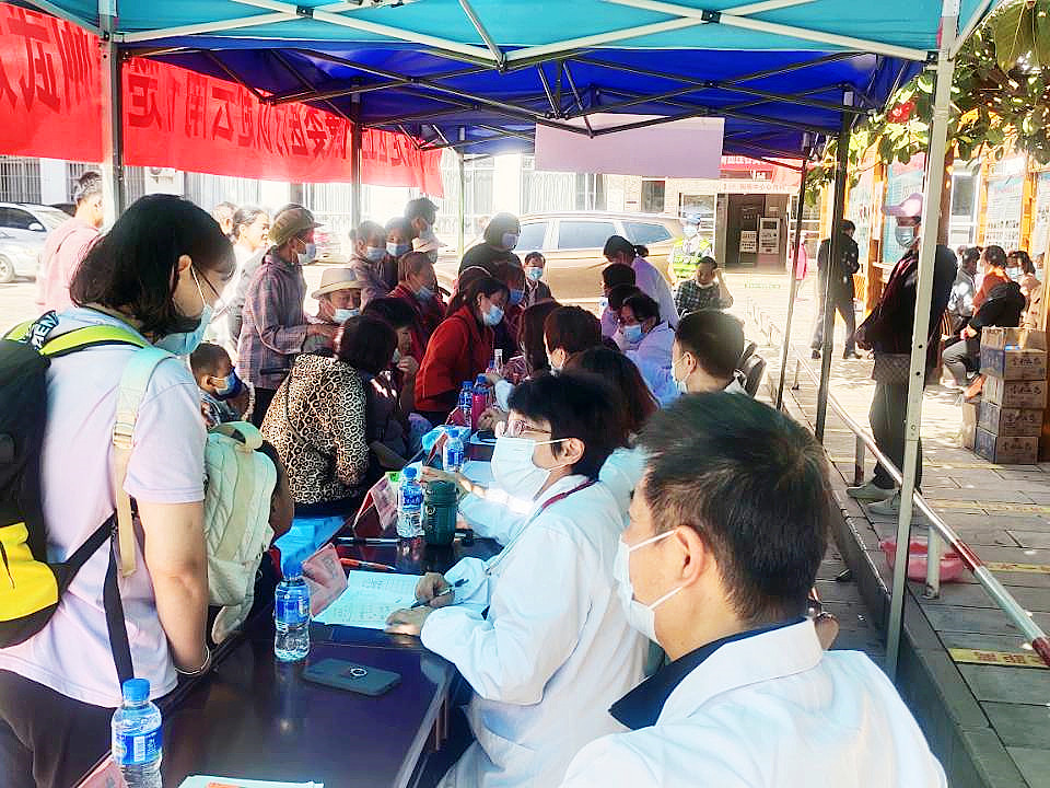座谈会结束,医疗队专家深入县人民医院各科室开展门诊带教、教学查房、医务人员培训,在县人民医院外科住院大楼门口举行了大型义诊活动。