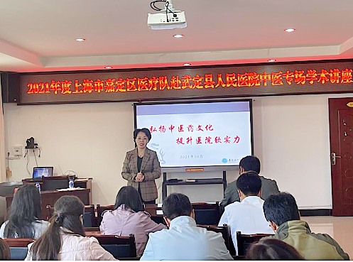 为落实沪滇扶贫协作规划,进一步夯实医院对口帮扶工作。2021年10月17日至18日,在上海市嘉定区卫健委副主任王涛带队下,由上海瑞金医院北部院区、海军军医大学第三附属医院(东方肝胆医院)、上海市第一人民医院嘉定分院(江桥医院)、嘉定区中心医院、南翔医院、安亭医院、中医医院、妇幼保健院、马陆镇社区卫生服务中心等9家医院共17名专家,涵盖了消化内科、肝胆外科、神经内科、心内科、肾内科、儿科、耳鼻喉科、肛肠科、妇产科等学科。赴武定县人民医院开展为期两天的经验交流、带教查房、义诊、学术讲座等活动工作。
