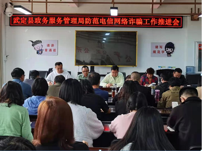 近年来,在全国刑事案件持续下降,社会治安环境不断向好的总体形势下,以电信网络诈骗为代表的非接触性犯罪正逐步替代传统“盗抢骗”犯罪成为当今的突出治安问题。为切实做好安全防范教育,提高广大干部职工众防骗意识,减少经济损失,预防和减少电信诈骗案件的发生,4月2日下午3点,武定县政务服务管理局召开防范电信网络诈骗工作推进会。