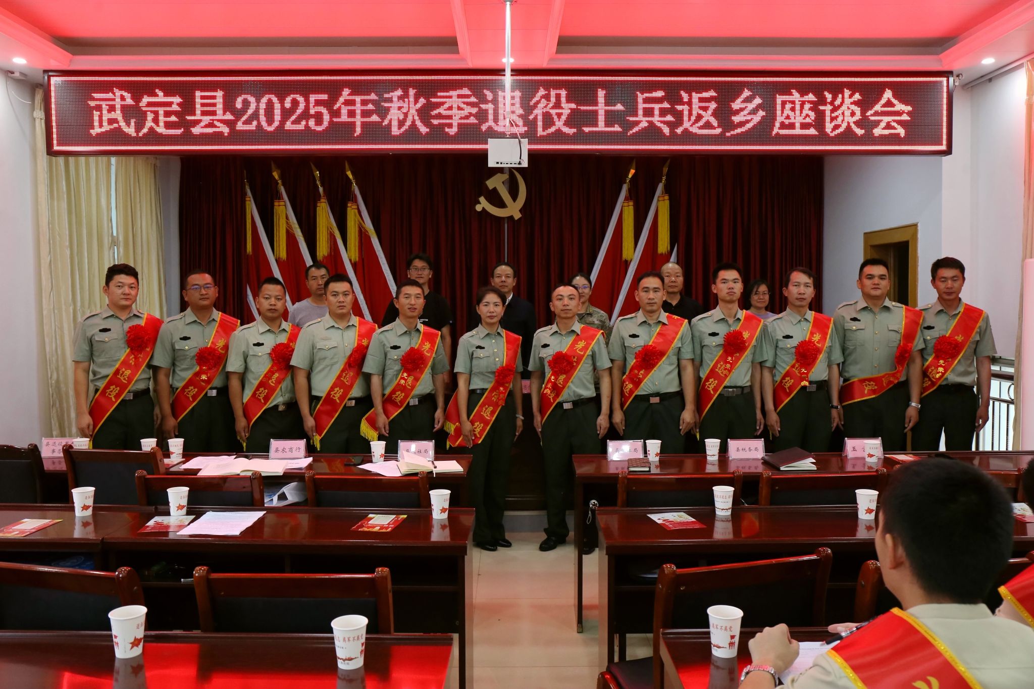 9月23日,武定县召开“戎耀归乡·筑梦武定”2025年秋季退役士兵返乡欢迎座谈会。局领导班子成员、相关科室负责人与秋季返乡退役士兵代表齐聚一堂,共话军旅荣光,共商发展新篇。