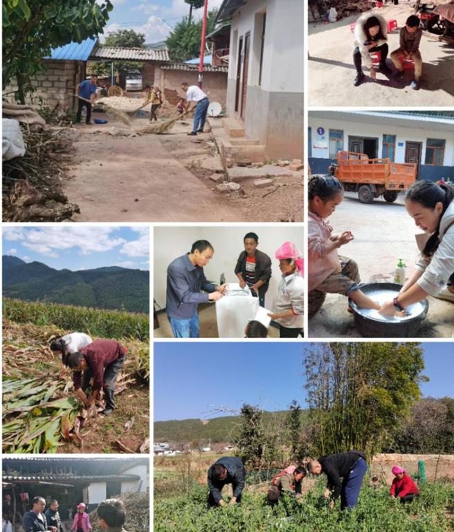 2021年10月13日,局长卢海燕带领工作人员,购买了大米、食用油、蔬菜、肉等食材到张明富家中,与张明富妻子一起洗菜、做饭,同做同食连心饭,帮其打扫院子及入户道路卫生。午饭后,卢海燕等顶着烈日、冒着酷暑与张明富到地里一起劳动,帮其扮玉米、撕玉米、抱玉米草,妻子罗秀琴感激地把茶水送到地里给工作人员喝。