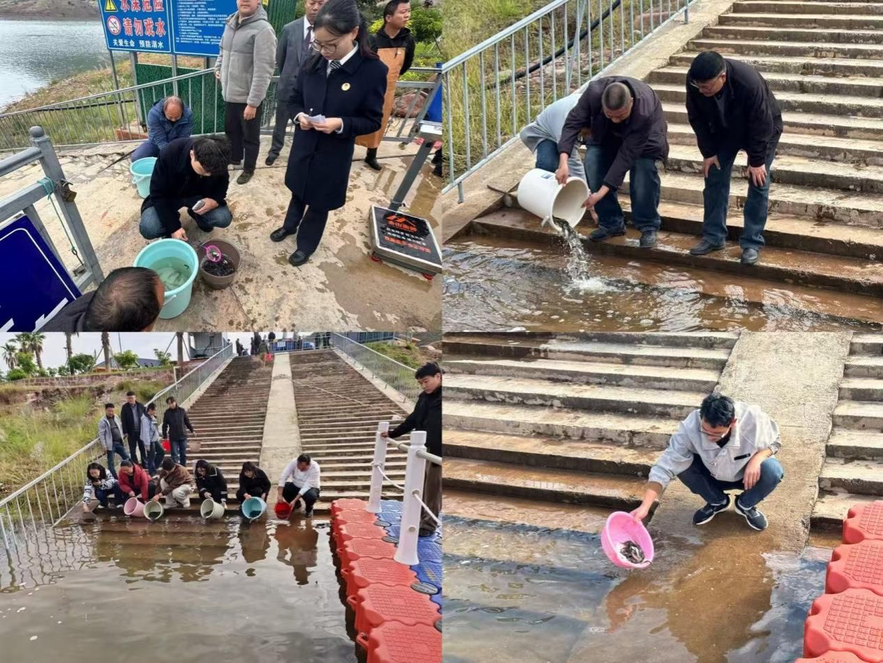 在放流环节,参与人员有序地将一袋袋活蹦乱跳的鱼苗投放到水域中。清澈的水面上,苗种迅速散开,开启它们在自然水域的新生活。为金沙江的生态系统补充了新的生机与活力。