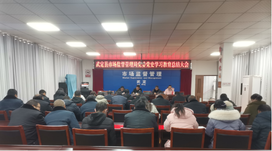 2022年2月21日武定县市场监督管理局党委召开党史学习教育总结大会,会议由局党委副书记吴丽然主持,局党委书记贺有文作总结,各股室(队)所共42人参加。