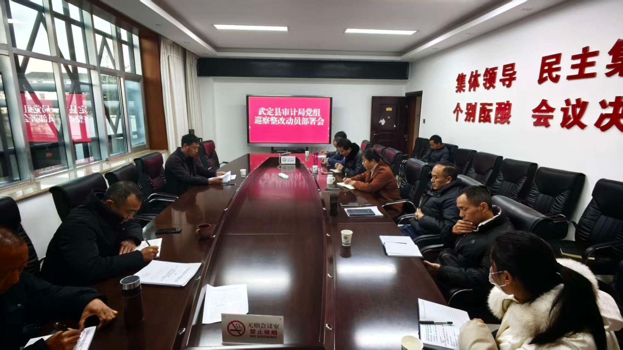 12月1日,武定县审计局党组召开巡察整改动员部署会议。局党组书记、局长潘有观同志主持会议,局班子成员、各股室负责人及相关人员参加。