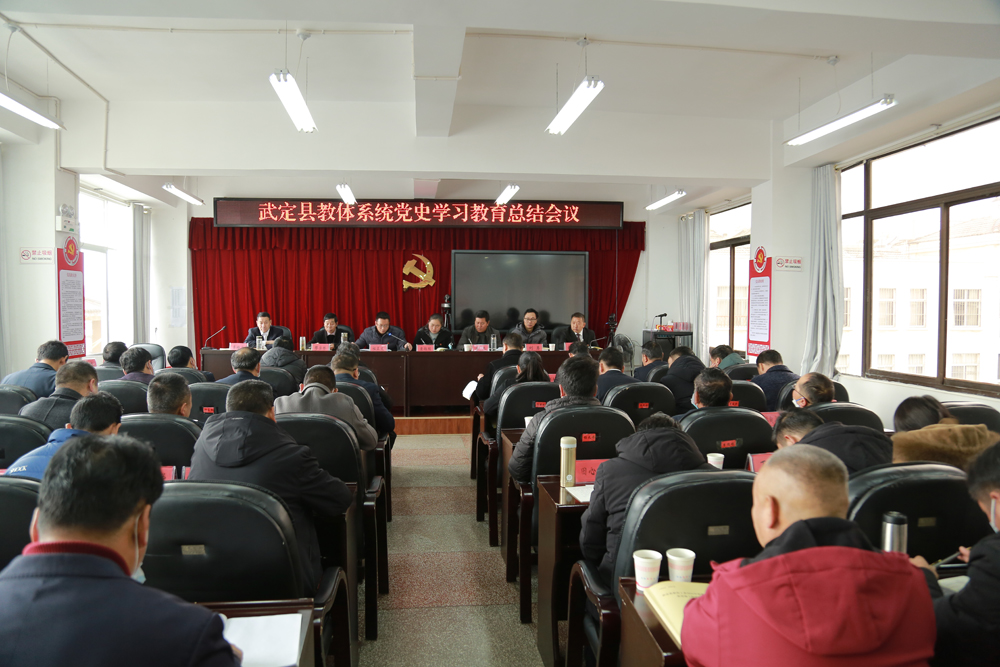 为全面总结武定县教育体育系统党史学习教育工作,2022年2月25日,武定县教育工委、县教育体育局党组召开全县教育体育系统党史学习教育总结会议,深入学习贯彻习近平总书记重要指示精神,认真贯彻落实中央和省委、州委、县委党史学习教育总结会议精神,全面总结党史学习教育成效和经验,对巩固拓展党史学习教育成果进行安排部署。