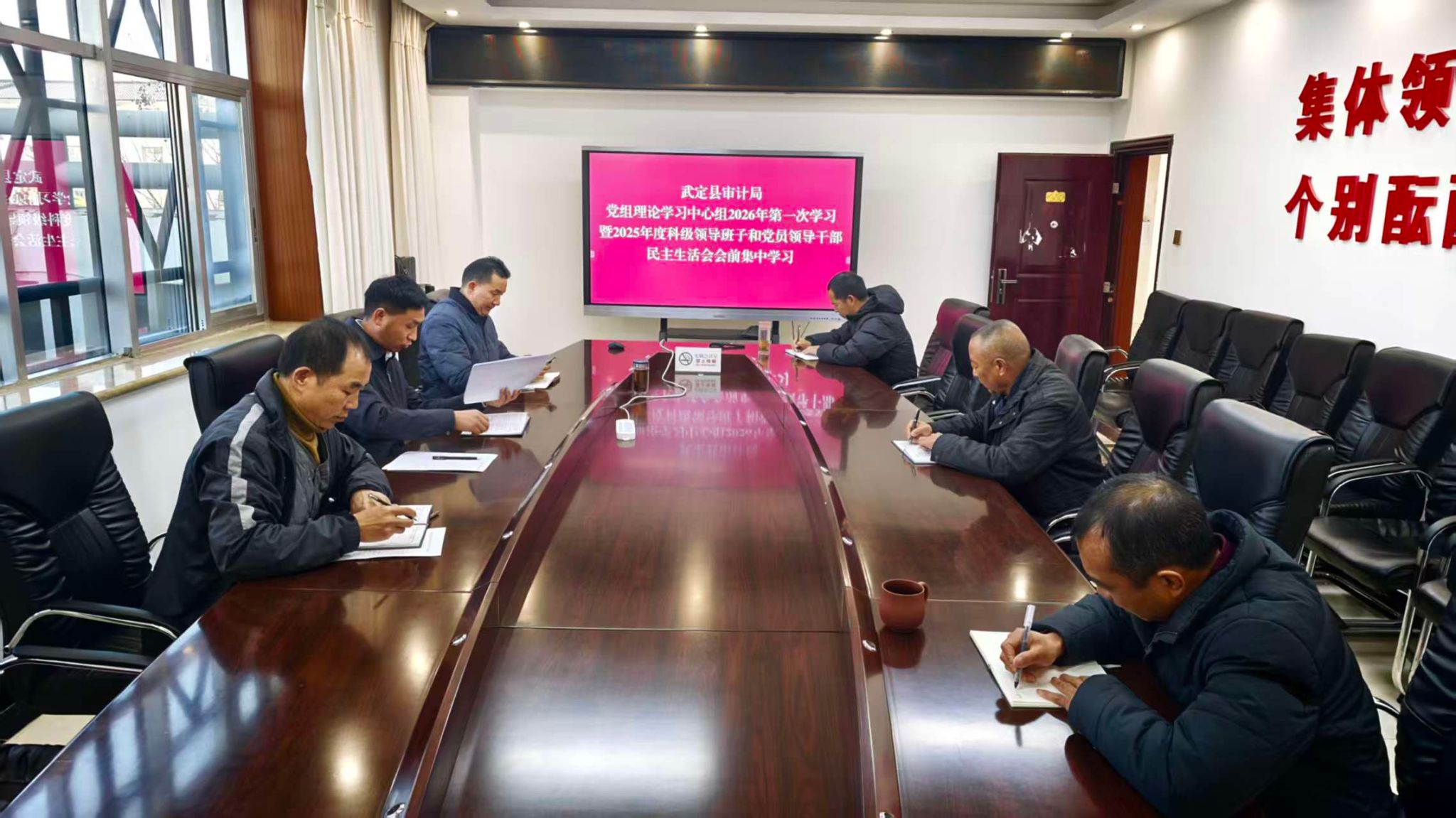 1月19日上午,武定县审计局党组理论学习中心组举行2026年第一次学习暨2025年度科级领导班子和党员领导干部民主生活会会前集中学习。