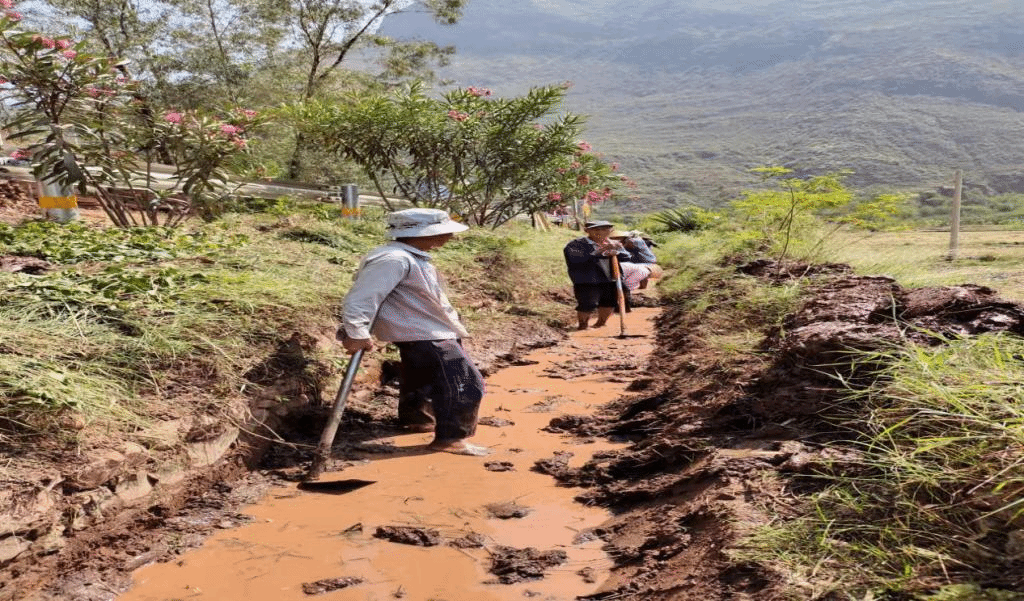 “嘀咚、嘀咚……”近日在武定县东坡傣族乡东坡村委会水田田坝里,传来群众清理排水沟的声音。