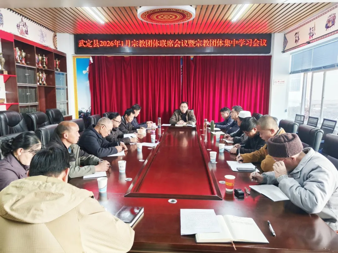 1月22日,武定县召开2026年度宗教团体第一次联席会议暨宗教团体集中学习会议,会议由县委统战部副部长、县民族宗教事务局副局长龙再能主持,县委统战部副部长、县民族宗教事务局局长文建华参加会议并讲话,县级各宗教团体共20余人参加会议。