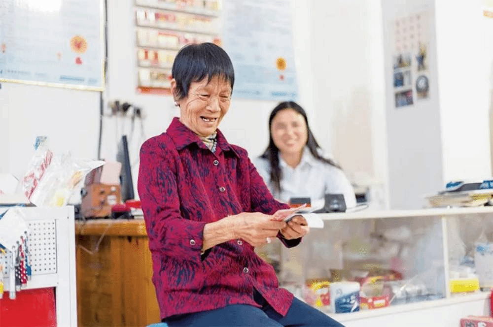 (我国成功建设了具有鲜明中国特色、世界上规模最大、功能完备的社会保障体系。图为江西省遂川县草林镇拱前村82岁脱贫户黄茂香在“社保村村通金融服务便民点”支取养老金,该县在286个村设立此类便民点,实现了所有老人不出村就可轻松支取。 中国社会保障杂志社供图 高敏/摄)