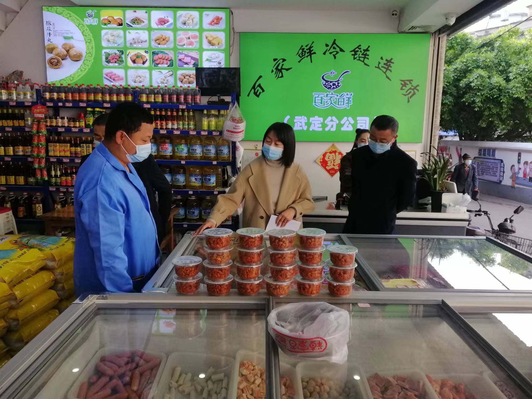 在农贸市场百家鲜冷链连锁武定分店督查时,她叮嘱企业负责人要严把生鲜食品进货关,加强产品质量安全源头追溯管控,还温馨提示顾客配合扫码测体温戴口罩。