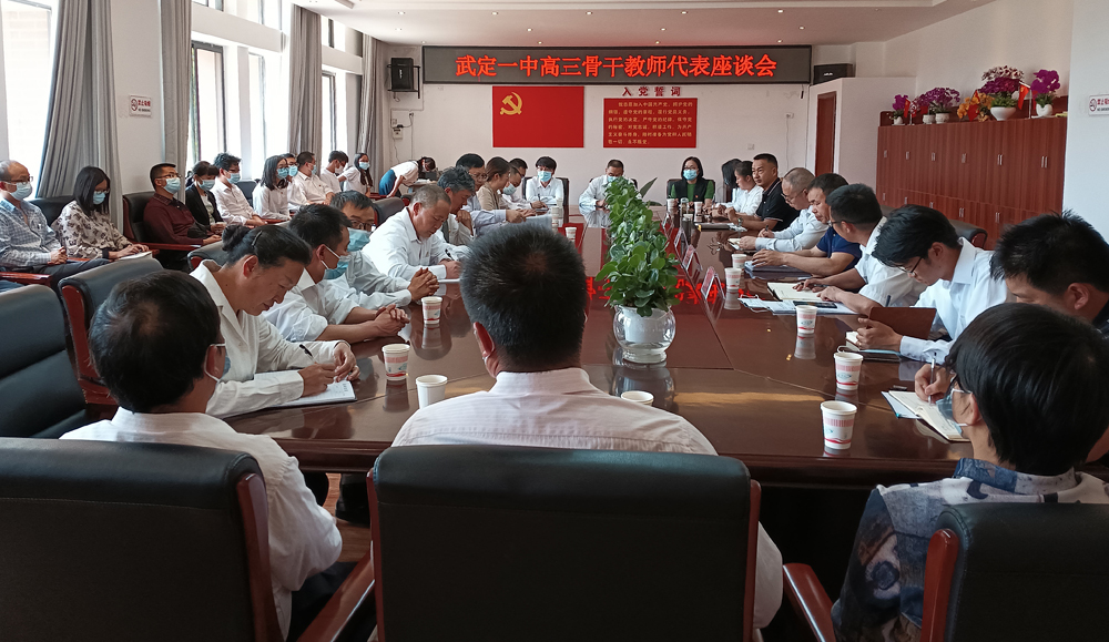 武定县委、县政府领导高度重视教育,4月23日下午,县委书记罗如贵同志带领县政协主席周廷质、县人民政府分管教育副县长张美权一行到武定一中召开高三年级教师代表座谈会,为全体高三教师加油鼓劲。