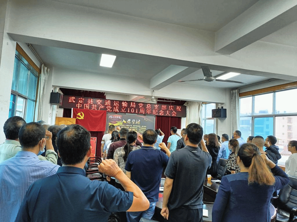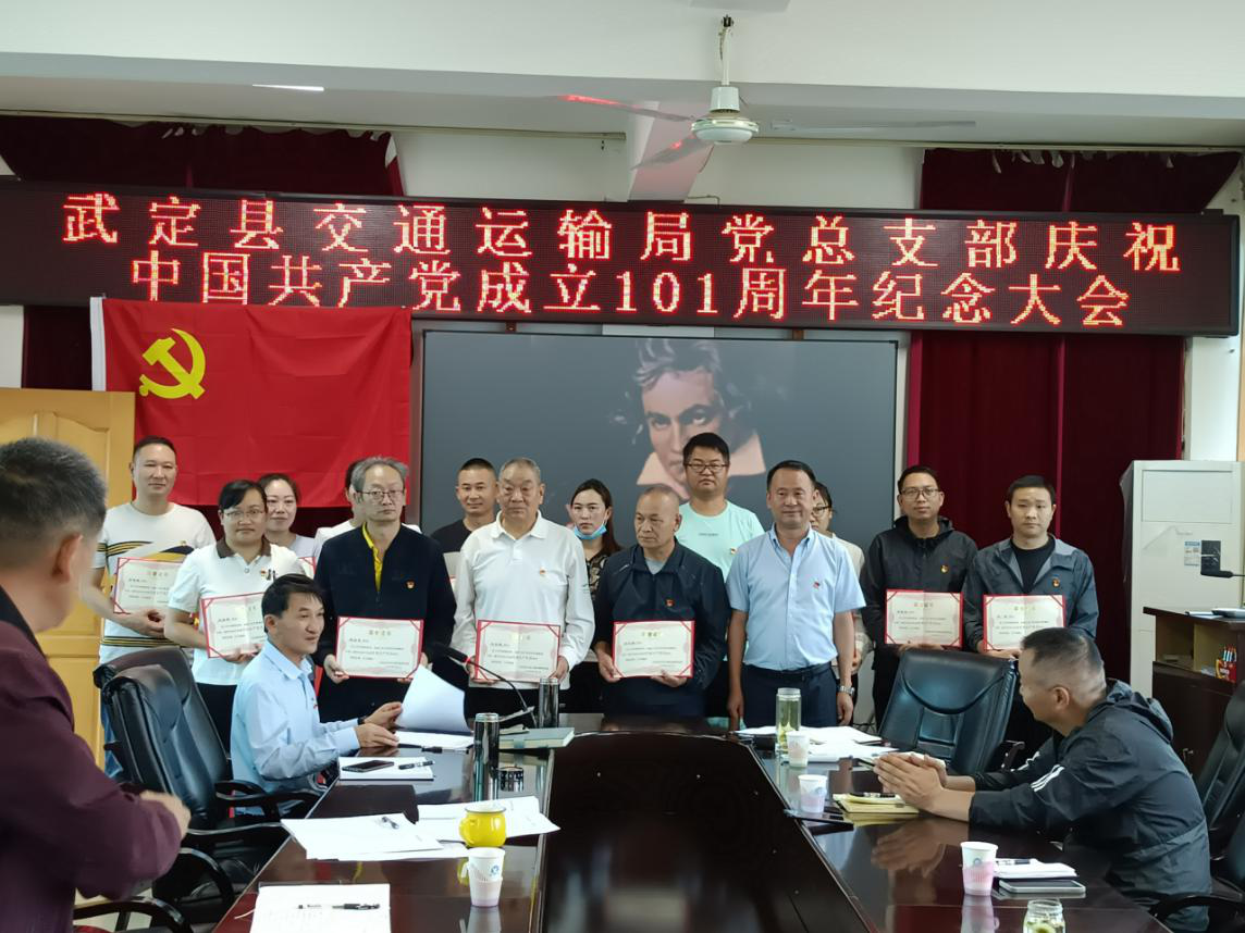 为庆祝建党101周年,武定县交通运输局党总支部深入贯彻党的十九届历次全会精神,持续推进党史学习教育常态化,不断用党的奋斗历程和伟大成就鼓舞斗志、明确方向,用党的光荣传统和优良作风坚定信念、凝聚力量,用党的实践创造和历史经验启迪智慧、砥砺品格,弘扬伟大建党精神,埋头苦干,勇毅前行,扎实做好各项工作,为武定县交通运输事业高质量发展不懈奋斗,以优异成绩迎接党的二十大胜利召开!