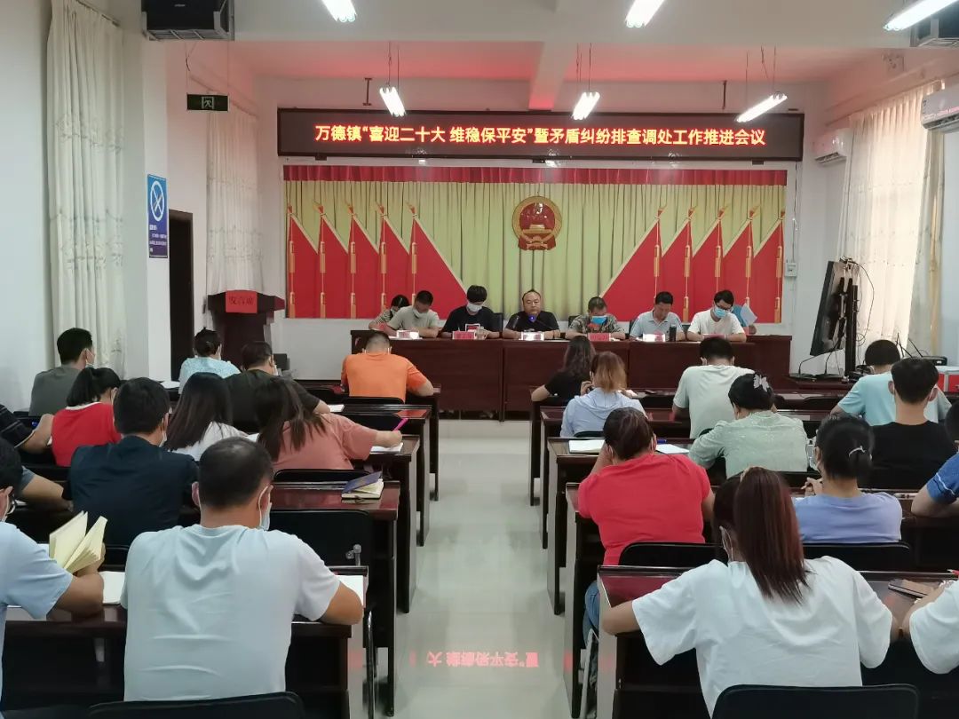 为深入推进全镇矛盾纠纷排查调处工作,以和谐稳定的社会环境迎接党的二十大胜利召开,8月21日,万德镇召开“喜迎党的二十大 维稳保平安”暨矛盾纠纷排查调处工作推进会。会议由镇党委委员、政法委员、副镇长杨德军主持,全镇干部职工、各村委会五职及驻村工作队员参加会议。