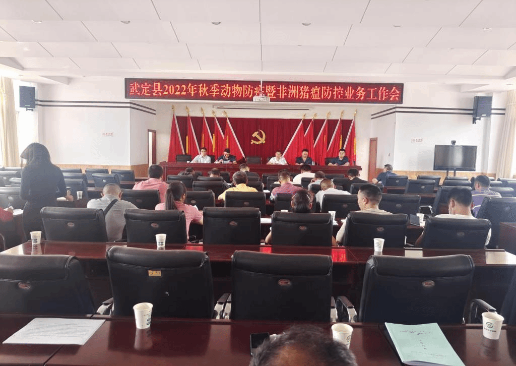 8月29日,武定县农业农村局召开会议,安排部署2022年秋季动物防疫、非洲猪瘟防控和农业保险工作。县畜牧兽医股、县动物疫病预防控制中心和县动监所全体干部职工,以及11个乡镇农业农村服务中心负责畜牧工作的副主任及相关业务人员等共40余人参加会议,县农业农村局陈刚副局长出席会议。