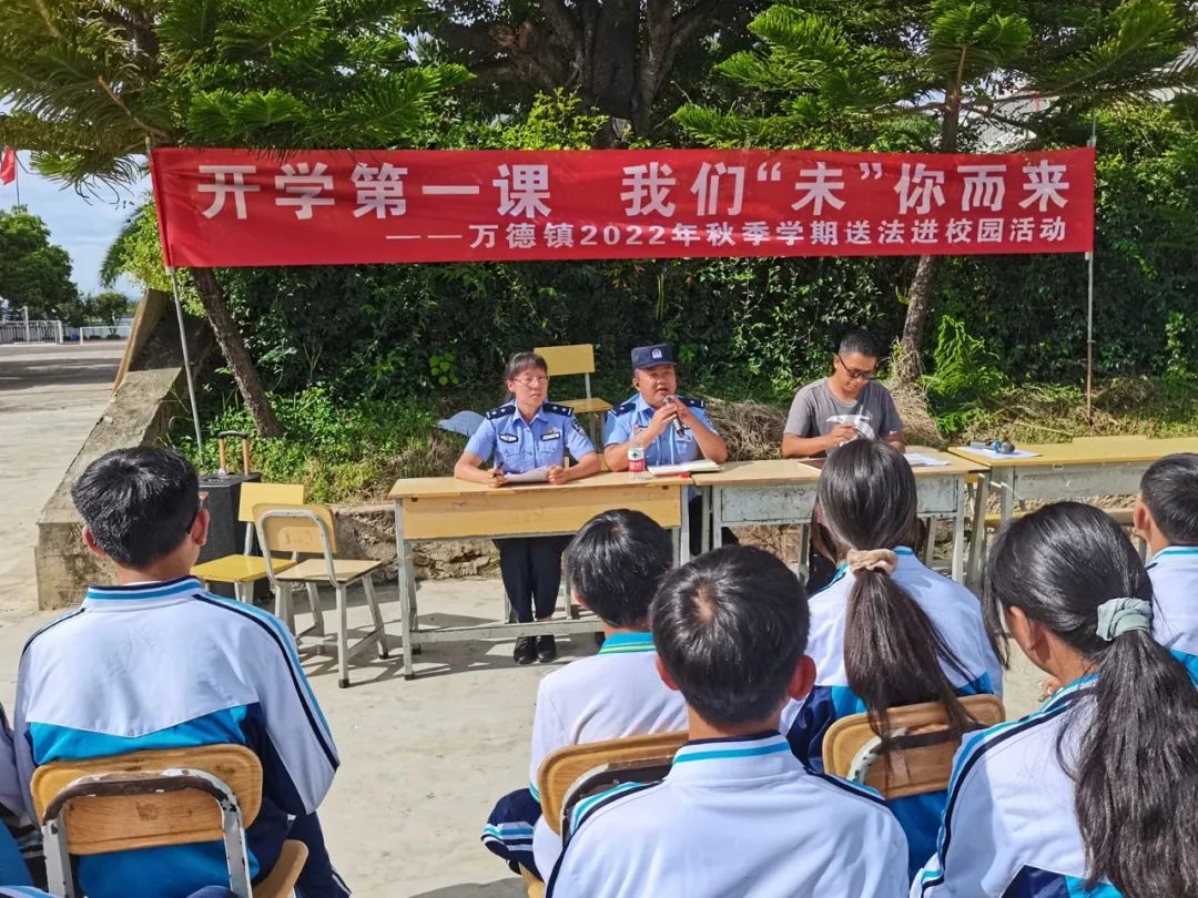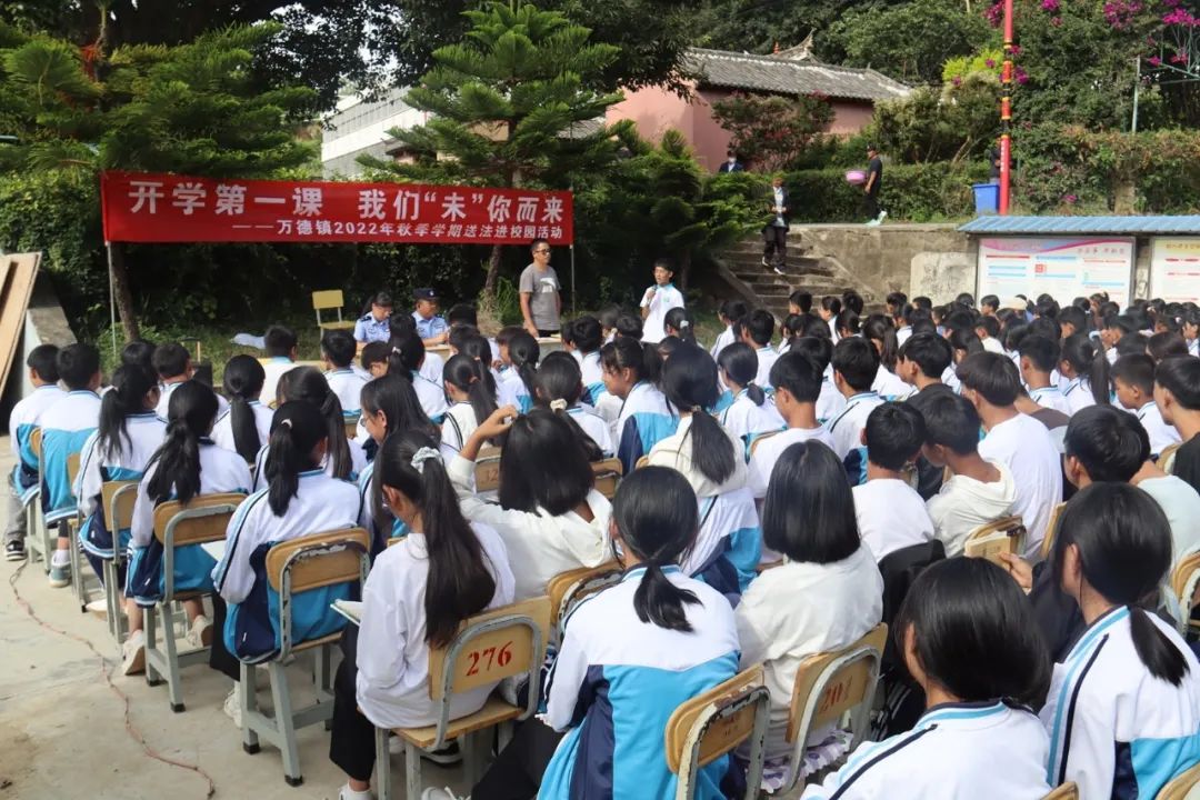 又是一年迎新季,正是少年启航时。8月29日,武定县万德司法所、万德派出所和镇综治办的普法志愿者们以万德中学的开学典礼为契机,为全校师生讲授了以“青春路上 法治护航”为主题的首场法治课,在青少年的心中播下“法治”的种子。