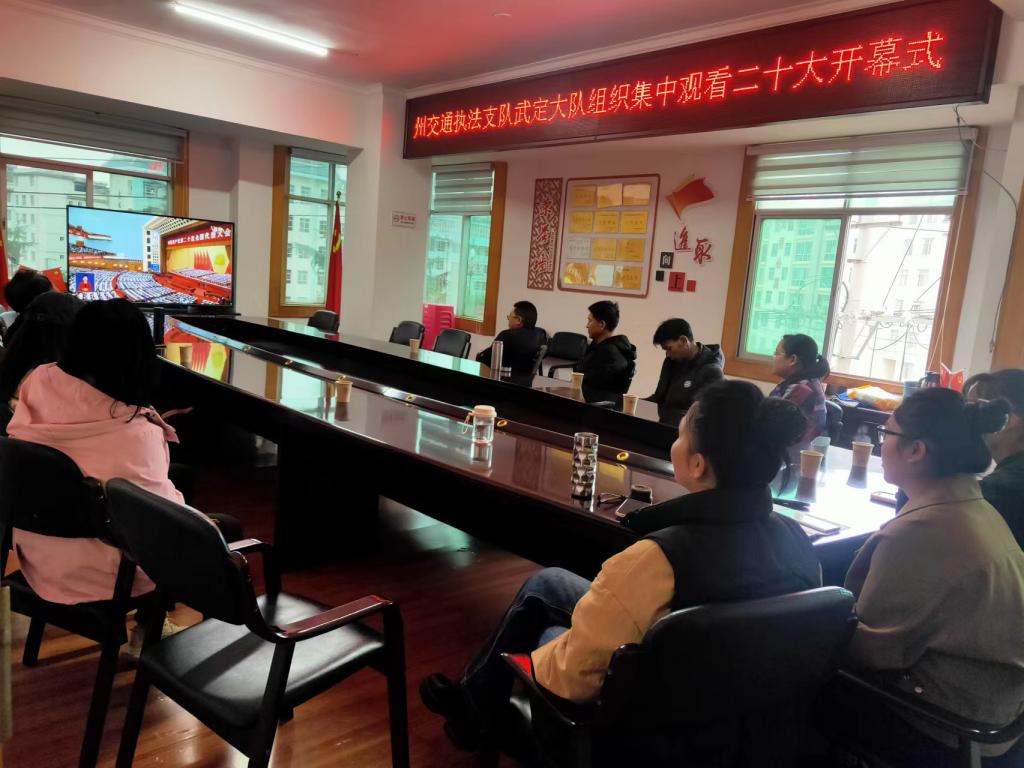 2022年10月16日上午,楚雄州交通运输综合行政执法支队武定大队组织全体党员干部集中观看了中国共产党第二十次全国代表大会开幕盛况,认真聆听大会报告。