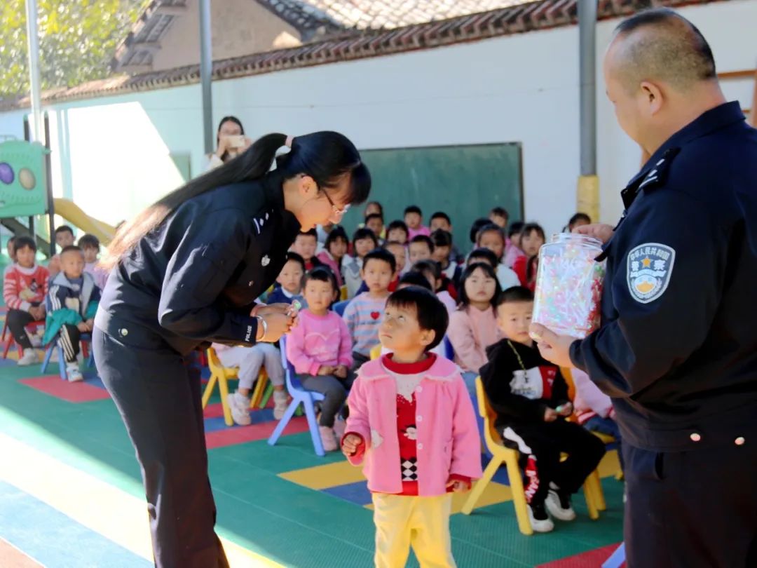 派出所民警则通过生动表演模拟日常生活中“高层坠落危险情境”、“插座莫伸手”、“红灯停、绿灯行、黄灯等一等”等常见情境,用诙谐幽默、互问互答等方式对交通安全、防欺凌等内容进行讲解,引导小朋友们上学放学路上要遵守交通规则注意安全,要牢记爸妈电话号码,牢记自己家庭住址,牢记遇到困难或危险及时告知家长或拨打110报警电话求助。