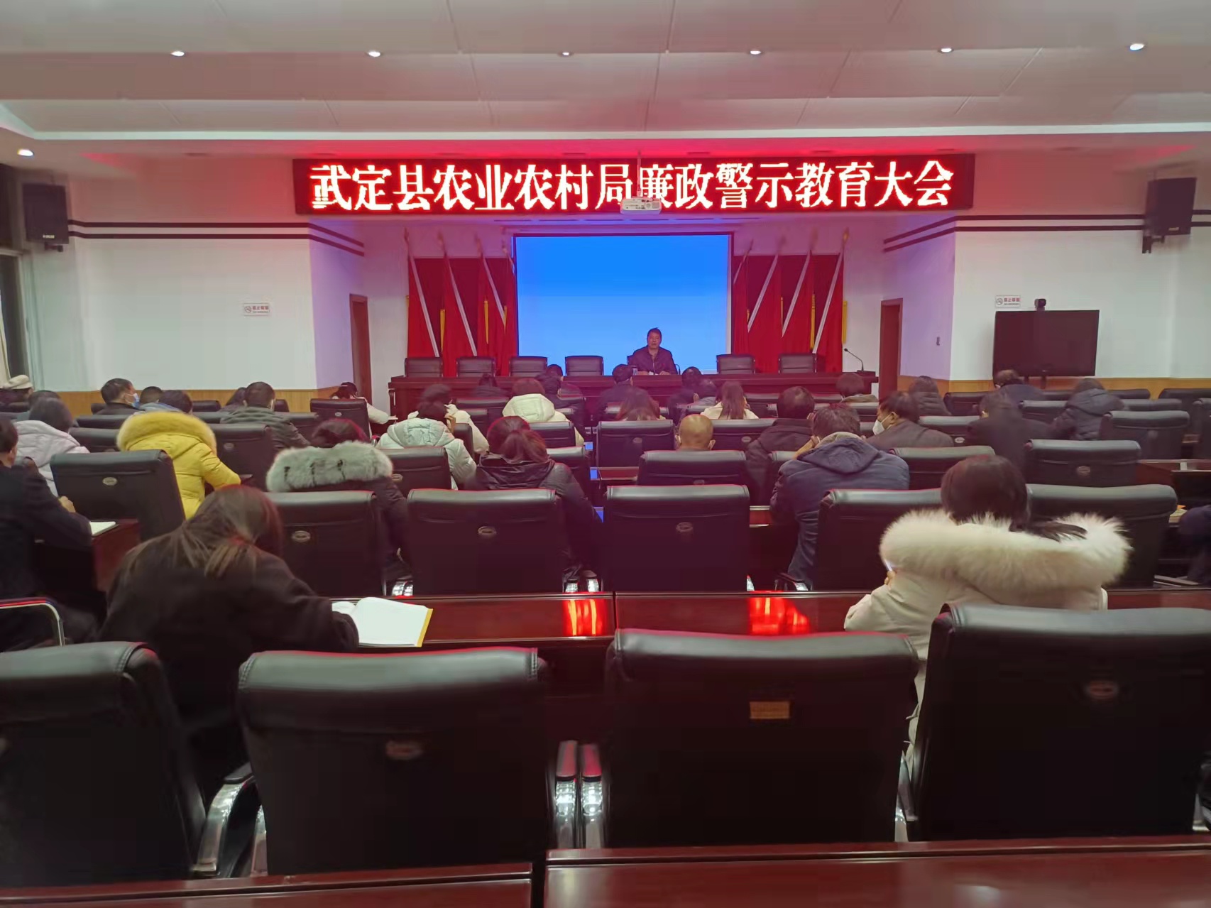 武定县农业农村局2023年1月9日晚,在五楼大会议室,召开廉政警示教育大会,全局党员、干部职工130多人参加了会议。