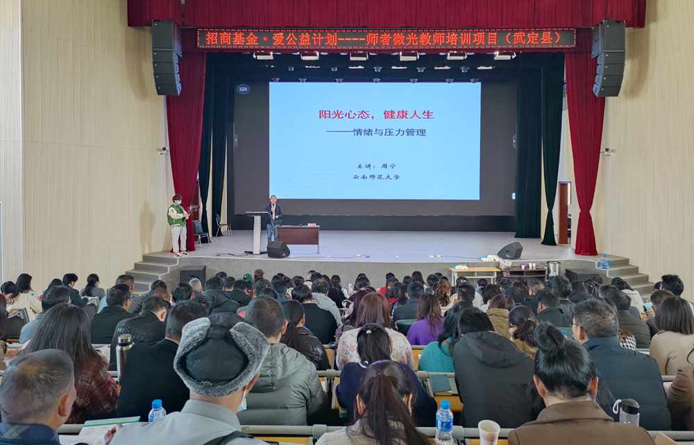 为深入贯彻落实中共中央国务院《关于全面深化新时代教师队伍建设改革的意见》和中共中央办公厅国务院办公厅印发《关于进一步减轻义务教育阶段学生作业负担和校外培训负担的意见》精神,全面提升教师队伍整体素质,为我县中小学教育发展提供强有力的师资保障。2月7日-9日,由全国中小学教师继续教育网、招商银行基金会、上海真爱梦想公益基金会、武定县教育体育局联合举办的“招商基金师者微光乡村振兴教师培训”在武定县香水中学报告厅举行,县直属学校、各乡镇中小学幼儿760 名教师参加了本期培训。