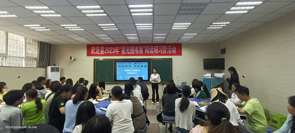 5月4日,武定县2023年“星光图书角”阅读研习营活动如期举行,全县小学(幼儿园)60余名语文骨干教师参加了培训,培训会由县教育体育局教研室张玉萍老师主持,县教育体育局副局长喻春华在培训开幕式上讲话。
