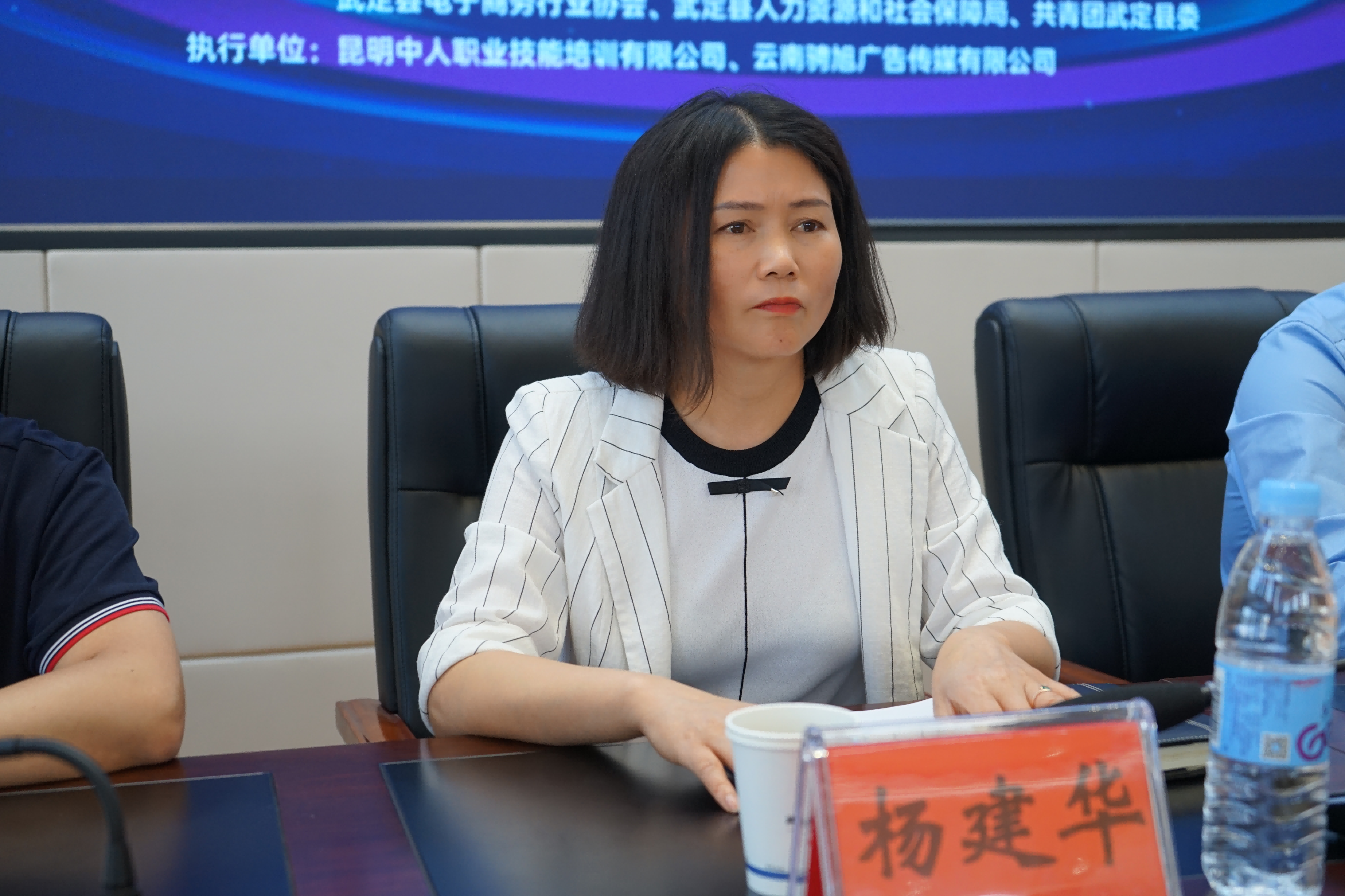 武定县工业信息化商务科学技术局局长杨建华、共青团武定县团县委书记王庭振、楚雄州教育体育局副局长武定县职业高级中学校长付磊、武定县职业高级中学党支部书记执行校长李绍富、云南骋旭广告传媒有限公司总经理课程导师纳勰磊以及参与直播大赛的学员、企业代表、社会各界人士参与本次活动。