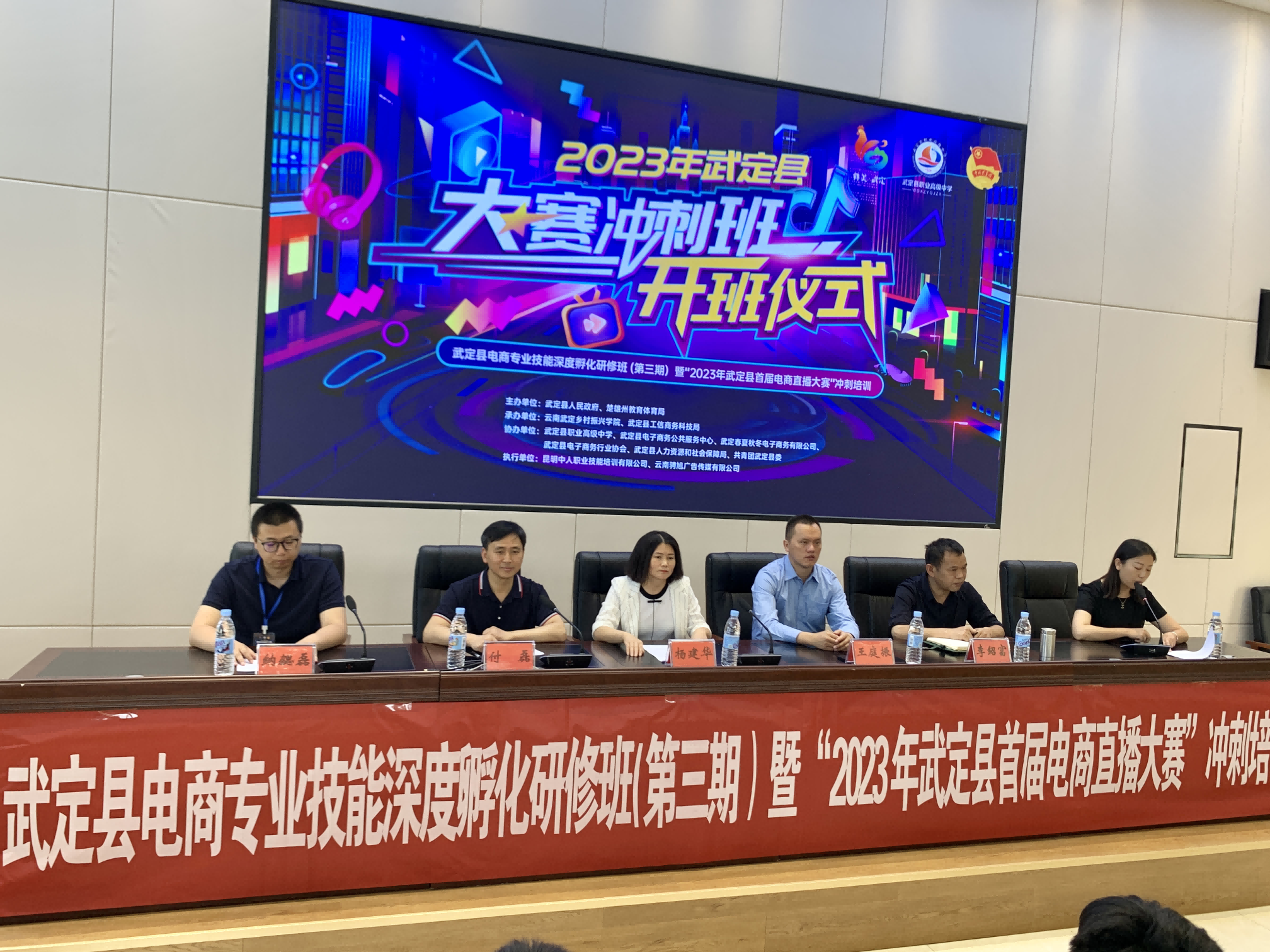 为挖掘培育一批具有发展潜力的本土网络主播,宣传推介武定县特色产品,2023年5月8日,2023年武定县首届电商直播大赛冲刺班开班仪式在武定县职业高级中学成功举办。