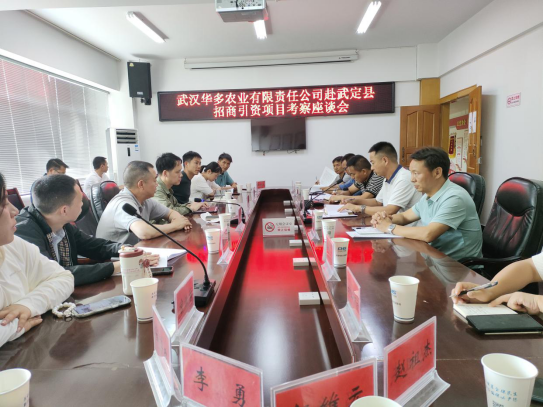 座谈会上,县人民政府副县长张美权详细介绍了武定县自然资源、投资环境、区位优势、重点招商项目、武定县种养殖业发展情况及“三张牌”(绿色食品牌)情况。赵祖凯总经理介绍了公司的基本情况,武汉华多农业有限责任公司是一家聚焦于核心区域,采用轻资产合作发展模式从事生猪养殖、种猪培育的专业化运营公司。武汉华多缘起于美国“WALDO GENETICS”,属于WALDOGENETICS在中国的分公司。WALDO GENETICS位于内布拉斯加州东南部德维特附近,拥有悠久的生产优质猪的历史,特别是公司的种猪父系品种杜洛克是全球育种公司里最好的杜洛克之一。WALDO GENETICS与美国国家猪登记处(NSR)合作,利用NSR的猪检测和遗传评估系统(STAGES)与内布拉斯加州SPF认证的性能测量技术收集和生成数据推进育种。武汉华多现阶段聚焦武汉区域式发展,以生物安全、养殖成本作为首要指标筛选运营项目。目前武汉华多公司运营项目有:麻城雄锋生态牧业有限公司、武汉丰美禾畜牧科技有限公司、武汉致丰养殖有限公司、荆门天种生态农牧有限公司、湖北丰美禾生态牧业有限公司等。依托WALDO GENETICS在国内经核心山猪群自身发展提供种源,并为国内种业发展提供优质基因。双方就生猪养殖及中草药种植及加工项目合作事宜坦诚的交换了意见,就合作事宜达成初步共识。