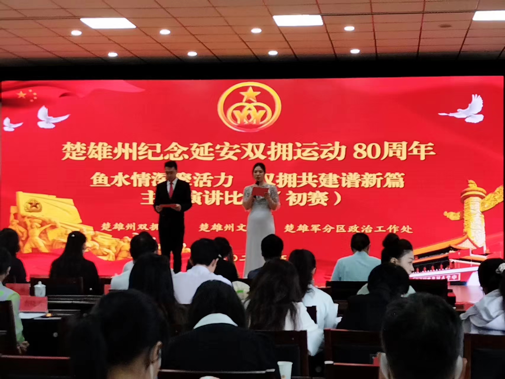 为纪念延安双拥运动80周年,传承拥军优属、拥政爱民光荣传统,大力弘扬爱国主义精神,近日,楚雄州双拥办联合州委宣传部、州文明办、楚雄军分区政治工作处组织举办了“鱼水情深聚活力 双拥共建谱新篇”主题演讲比赛。