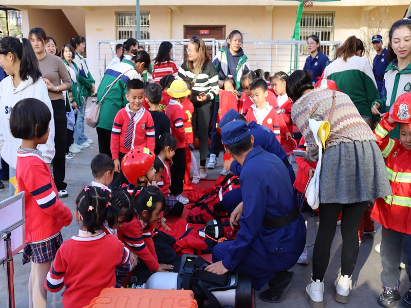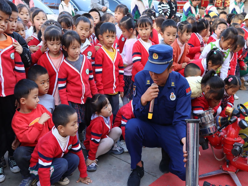 近日,武定县香水明珠幼儿园200多名师生及家长走进武定县消防救援大队,零距离学消防。