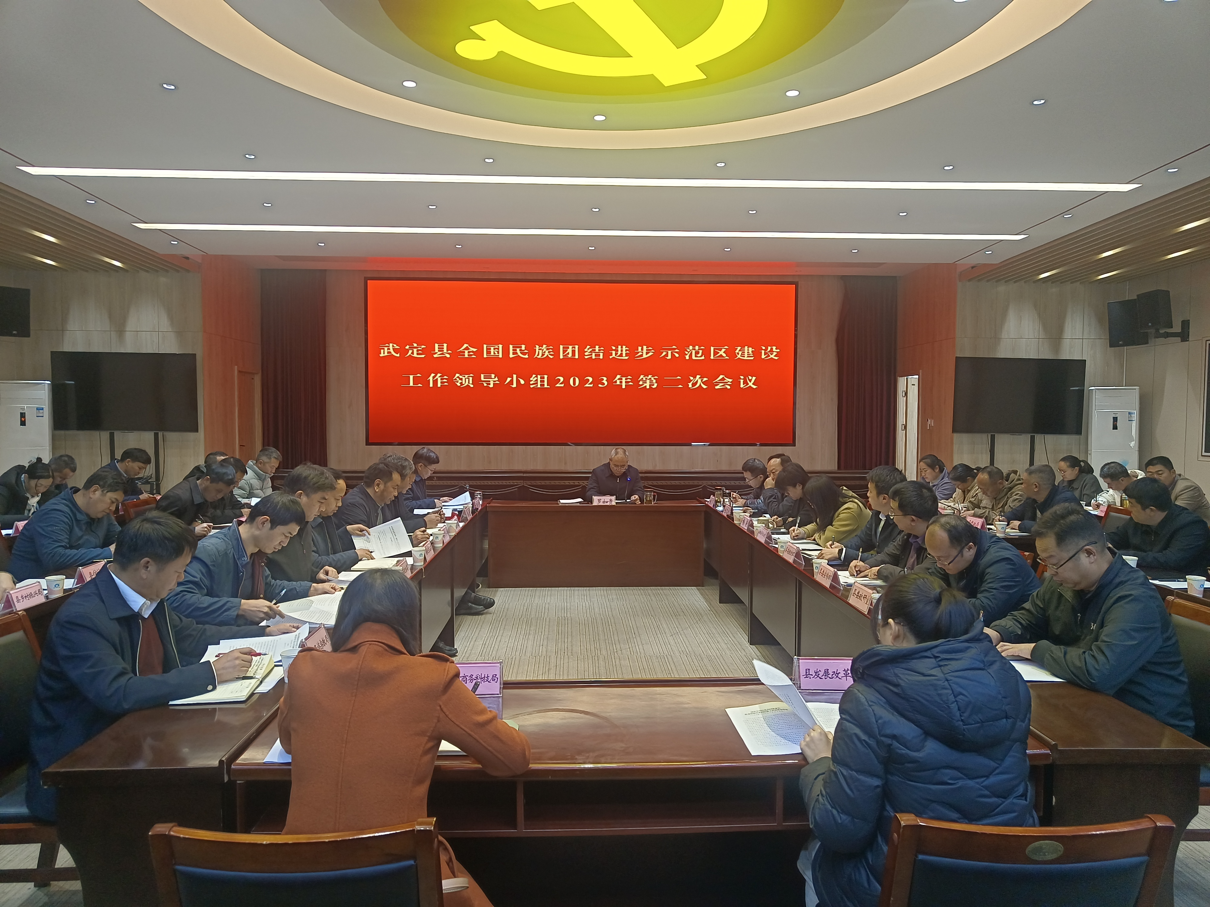 会议强调,要以党的二十大精神为统领,谱写好新时代党的民族工作武定县新篇章。不断加强党对民族工作的全面领导,持之以恒深化民族团结进步宣传教育,推动各民族共同走向社会主义现代化,促进各民族交往交流交融,提升民族事务治理体系和治理能力现代化。要突出工作重点,着力打造民族团结进步创建工作升级版。着力深化内涵,丰富形式,创新方法,全面推动民族团结进步创建工作提质增效、提档升级,以创建工作新成效,不断巩固和发展中华民族大团结。要切实增强责任感和紧迫感,扎实做好争创全国民族团结进步示范县各项工作。提高政治站位,扛牢主体责任;强化联动协调,形成工作合力;坚持问题导向,全面巩固提升。要实行六项机制,坚决守住民族团结生命线。实行领导责任制、重点工作任务承诺制、巡察和督查考核制、报告和通报机制、考核激励机制以及追责问责制,坚决守住民族团结生命线。