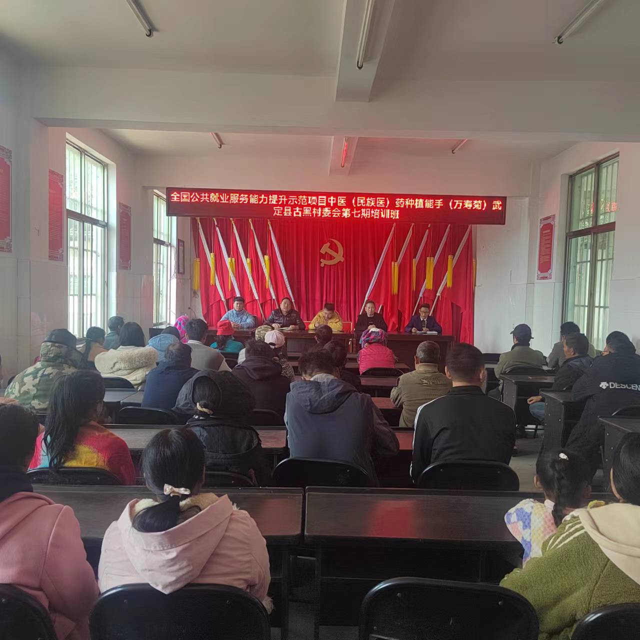 2023年11月20日,由武定县人力资源和社会保障局主办,昆明新长江职业培训学校承办的全国公共就业服务能力提升示范项目中医(民族医)药种植能手(万寿菊)武定县古黑村委会第七期培训班开班仪式在古黑村委会举行。白路镇社会保障和为民服务中心工作人员、村四职、54名参训学员参加了开班仪式。