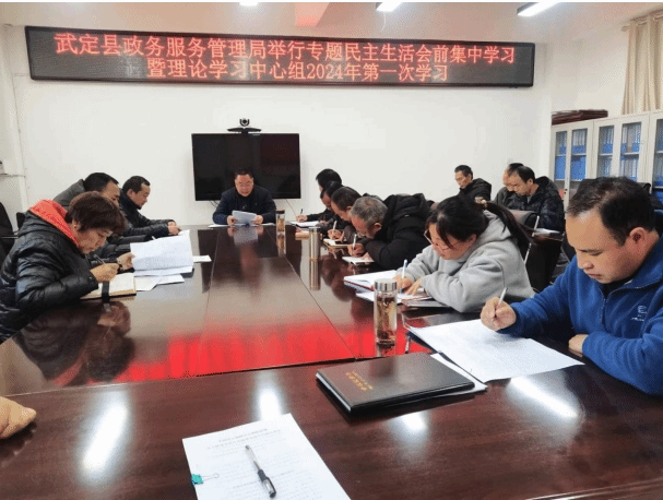1月15日,武定县政务服务管理局开展学习贯彻习近平新时代中国特色社会主义思想主题教育专题民主生活会前集中学习暨理论学习中心组2024年第一次学习。局党组理论学习中心组成员、局长、各股室长或股室负责人参加会议,局党组书记刘再兴主持会议并讲话。