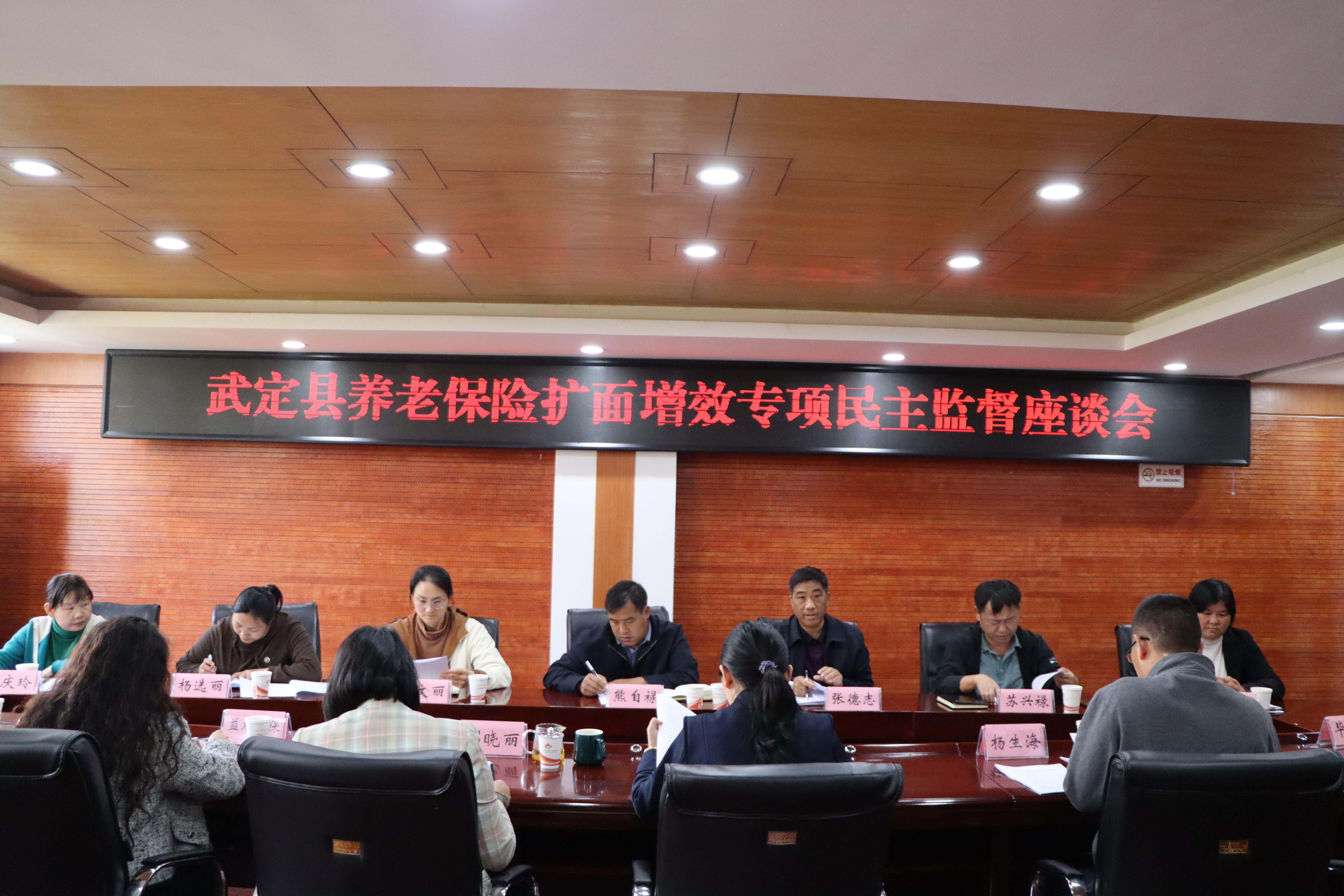 3月13日下午,在县人力资源和社会保障局召开“武定县养老保险扩面增效专项民主监督座谈会”。李春云局长介绍了全县养老保险扩面增效工作情况,系统分析了当前参保扩面存在的问题与短板,并对下一阶段的工作和打算做了汇报。参会的委员们针对三天来走访调研的情况,指出了当前全县社会保险实施过程中存在的困难和问题,提出了“加强领导,统筹推进;加大宣传,深入民心;完成任务,扩面增效;强化举措,提升服务;坚持创新,优化流程;强化监管,防范风险”等意见建议。