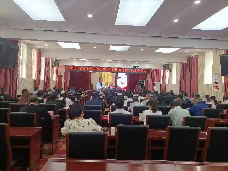 为深入学习宣传贯彻党的二十大精神和习近平总书记关于加强和改进民族工作的重要思想,常态化开展铸牢中华民族共同体意识宣传教育,引导各族干部群众不断坚定对伟大祖国、中华民族、中华文化、中国共产党、中国特色社会主义的高度认同,持续营造“中华民族一家亲、同心共筑中国梦”的浓厚氛围,4月17日下午,楚雄州全国民族团结进步示范区建设领导小组办公室在州会务中心一楼新闻发布厅,召开铸牢中华民族共同体意识理论宣讲报告会,武定县组织90余名党政干部参加武定分会场会议。云南民族大学博士、教授、硕士生导师,云南民族大学党委统战部副部长、铸牢中华民族共同体意识研究院专职副院长,云南省中青年学术带头人后备人才,国家民委民族研究优秀中青年专家、国家民委民族团结进步创建高端智库专家、全国民族团结进步示范评审专家杨文顺主讲。