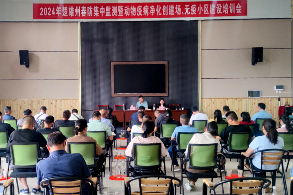 培训在云南兴牧养殖有限公司武定马头山养殖基地进行,楚雄州动物疫病预防控制中心主任杨培昌围绕动物疫病净化创建场、无疫小区建设、人畜共患病防控、兽医实验室生物安全等工作进行业务培训并提出工作要求;武定县动物疫病预防控制中心、云南兴牧养殖有限公司武定马头山养殖基地围绕动物疫病净化创建工作的主要做法和成效进行交流发言;全体参会人员对云南兴牧养殖有限公司的动物疫病净化创建档案资料进行现场观摩学习和业务交流。