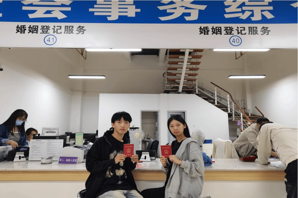 “太好了,在你们大厅工作人员的帮助下,我们是今天第一对领到结婚证的新人,非常有意义。”彭女士激动地说道,并请工作人员给他们拍照留念。