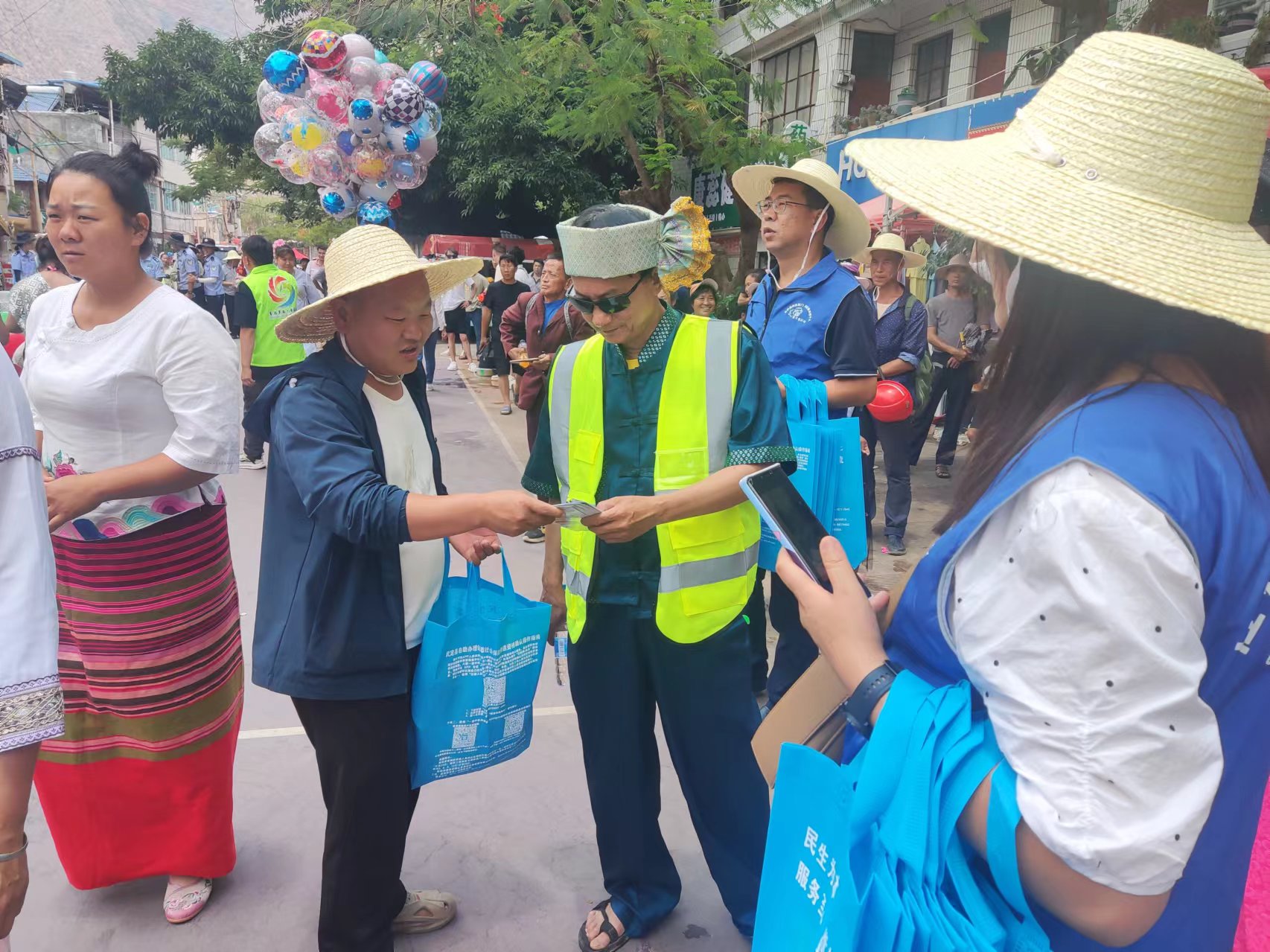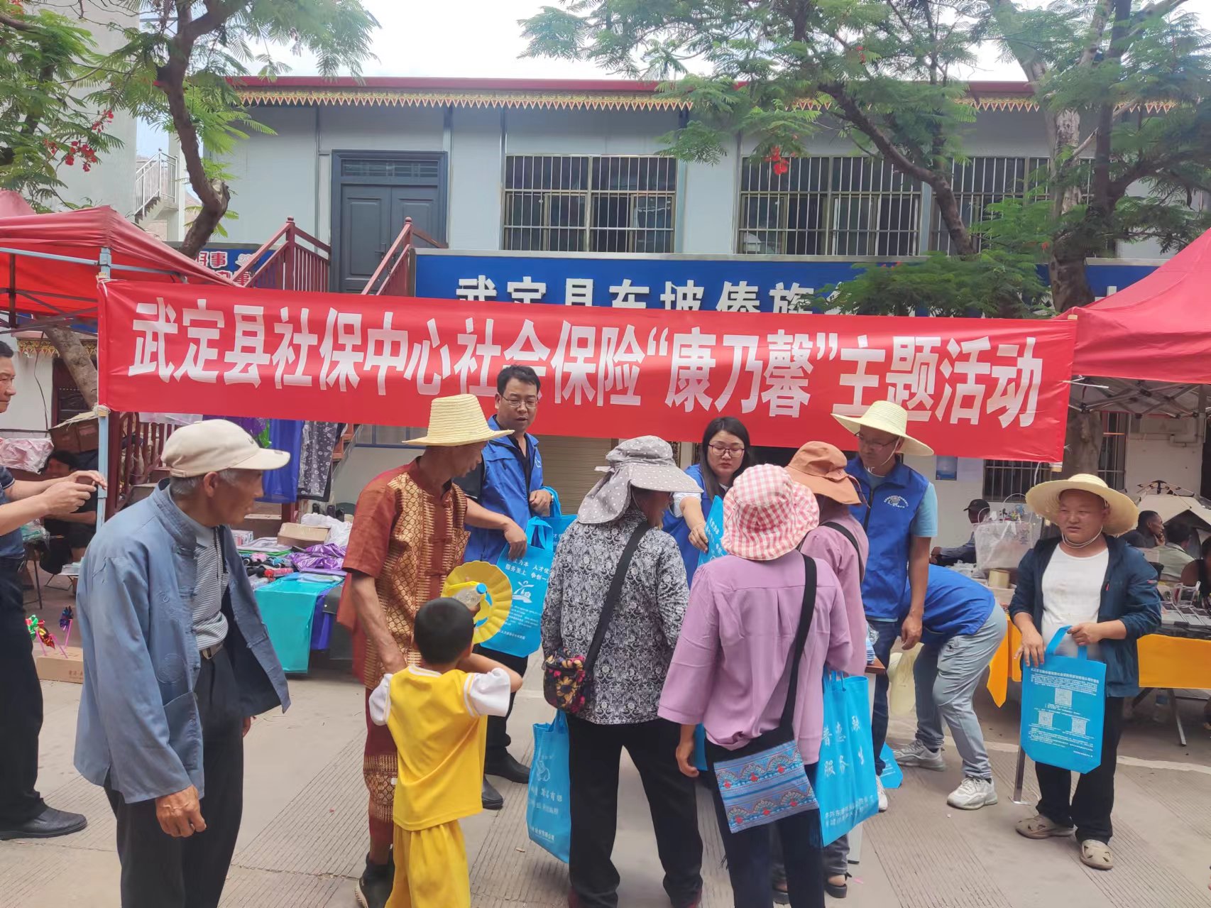 近日,正值东坡傣族乡“四月八”泼水节传统民族节庆,大街小巷到处热闹非凡,充满节日的味道。武定县人力资源和社会保障局“康乃馨”服务队员充分利用有利时机深入到东坡乡,与当地干部职工一起开展社保政策宣传活动,做到服务群众“零距离”。