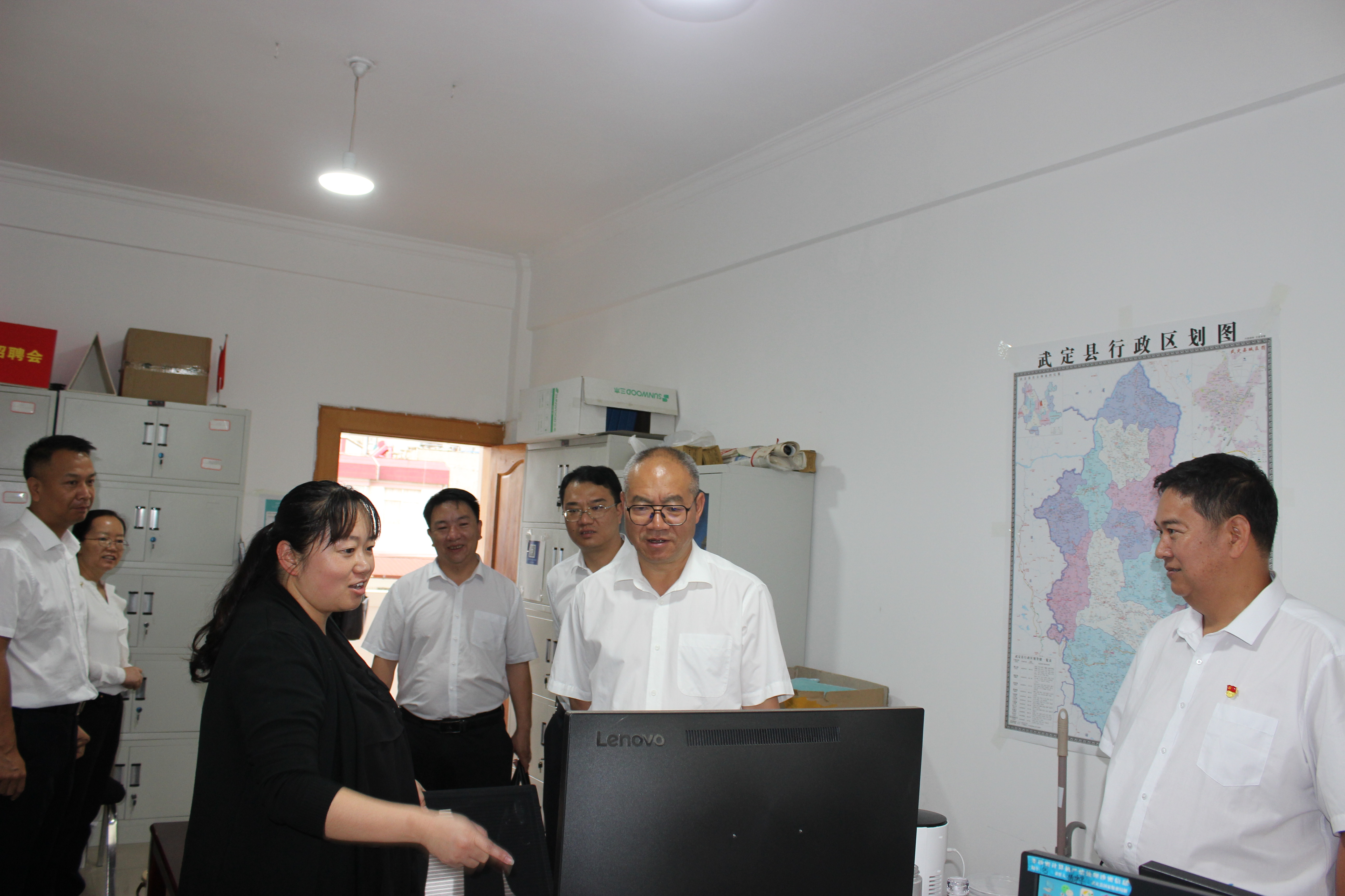 罗如贵一行参观了县退役军人事务局各股室,现场抽检业务人员系统操作能力,详细了解退役军人和其他优抚对象服务保障、抚恤优待政策落实、双拥工作开展、烈士陵园、机关党的建设、部门机构运行等情况。