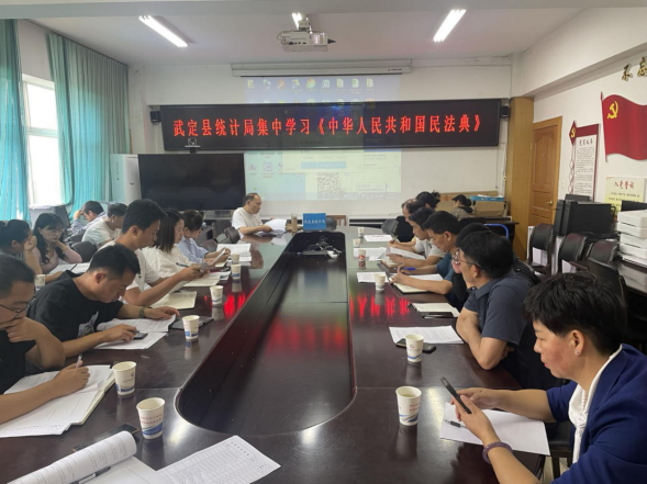 以学民法典,驱动强化统计法治意识。以民法典宣传月活动为契机,切实加强统计法宣传。组织干部职工集中学习民法典的重要意义、核心理念、地位作用等内容,并对民法典部分章节内容进行学习。坚持学以致用,用法典内容指导统计工作,把民法典作为统计决策、统计管理、统计监督的重要标尺。坚持以法治理念、法治思维、法治方式开展统计工作,积极改进统计方法和手段,既防止漏统漏报、做到应统尽统,又要依法加强数据审核评估,增强统计工作“显示度”、提高统计服务“精准度”、拓展统计与业务工作的“融合度”,更好地发挥统计监督职能作用,持之以恒推进统计法治建设。