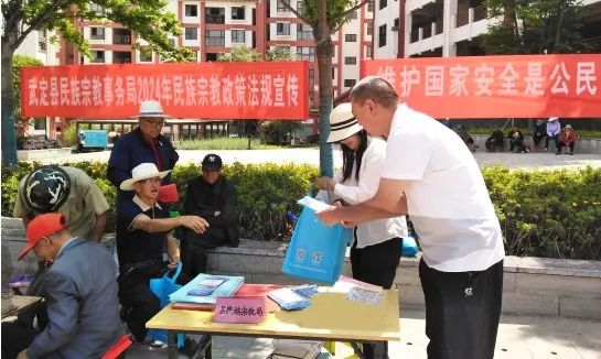 夯实精神基础,画好民族团结“同心圆”。一是凝聚思想共识,汇聚工作合力。将铸牢中华民族共同体意识纳入国民教育、干部教育、社会教育内容,用好县委党校、农村党员干部培训等平台,开展“浸润式”教育。二是深化宣传教育,营造浓厚氛围。组建民族团结进步志愿者宣传队和296支民族民间文艺队,开展民族团结“宣传月”“宣传周”“宣传日”等活动,举办民族宗教政策及法律法规专题学习培训,发放民族宗教工作宣传材料,为民族团结进步创建营造浓厚氛围。三是强化示范引领,打造民族团结进步示范点。制定《武定县基层党建“一带五区”创建实施方案》,积极推动党建引领民族团结进步示范区建设。目前,全县创建国家级示范单位1个、中国少数民族特色村寨2个,国家级和谐寺观教堂1个。
