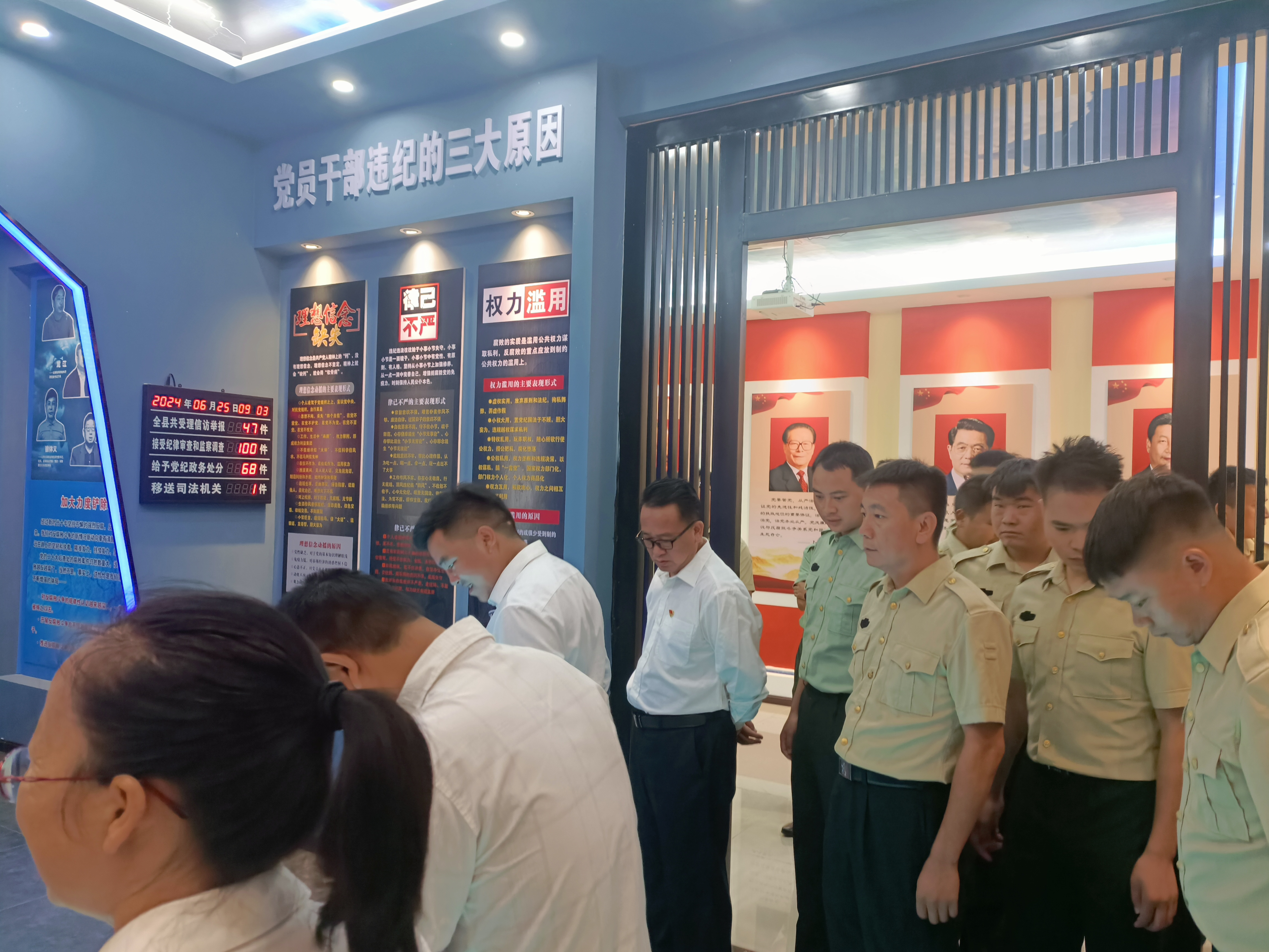 为把党纪学习教育走实走深,入心入脑,推动以案促学,引导党员干部、职工学纪、知纪、明纪、守纪。6月25日,武定县退役军人事务局组织单位全体党员、干部职工和2024年度符合政府安排工作退役士兵到武定县反腐倡廉警示教育基地开展“党纪学习强党性.警钟长鸣筑防线”警示教育活动。