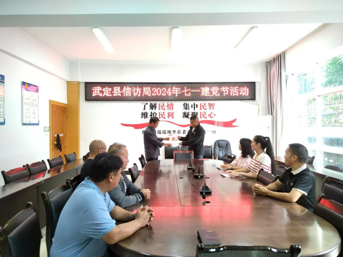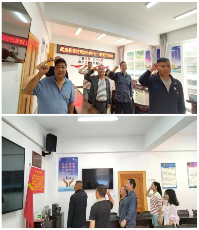 7月1日至3日,武定县信访局党支部开展“五个一”建党节系列活动,庆祝中国共产党成立103周年,继承和弘扬党的光荣传统和优良作风,进一步激发党员干部干事创业热情和活力,增强使命感和责任感,提高工作向心力和凝聚力。