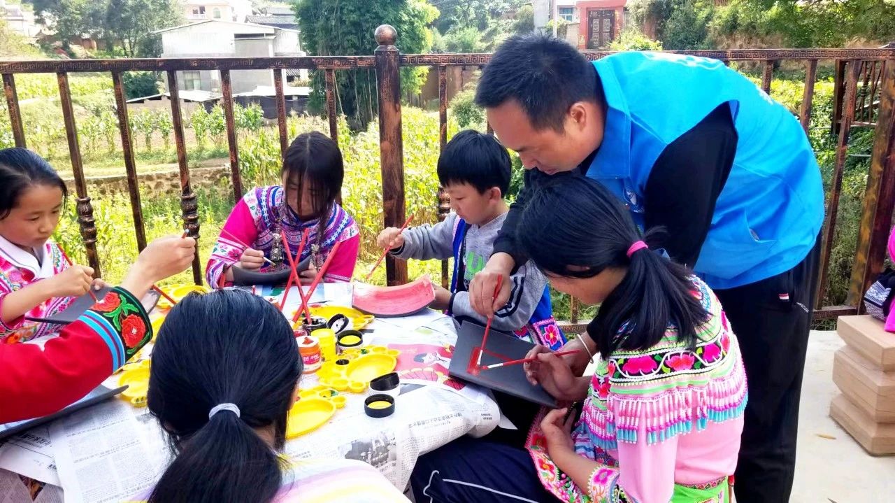 (爸爸组织留守儿童开展法治文化手绘活动)
