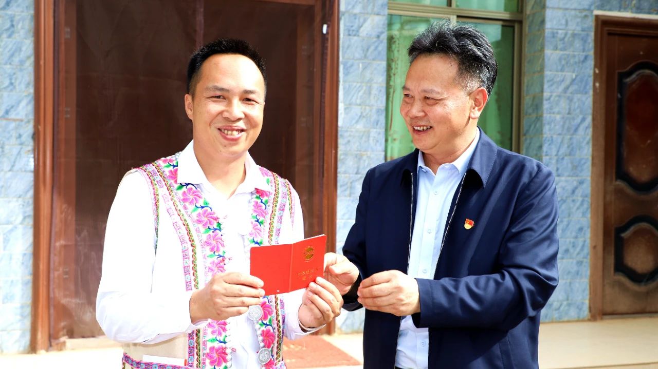 (2022年6月24日,省司法厅副厅长彭国军向爸爸颁发“法律明白人”证书)